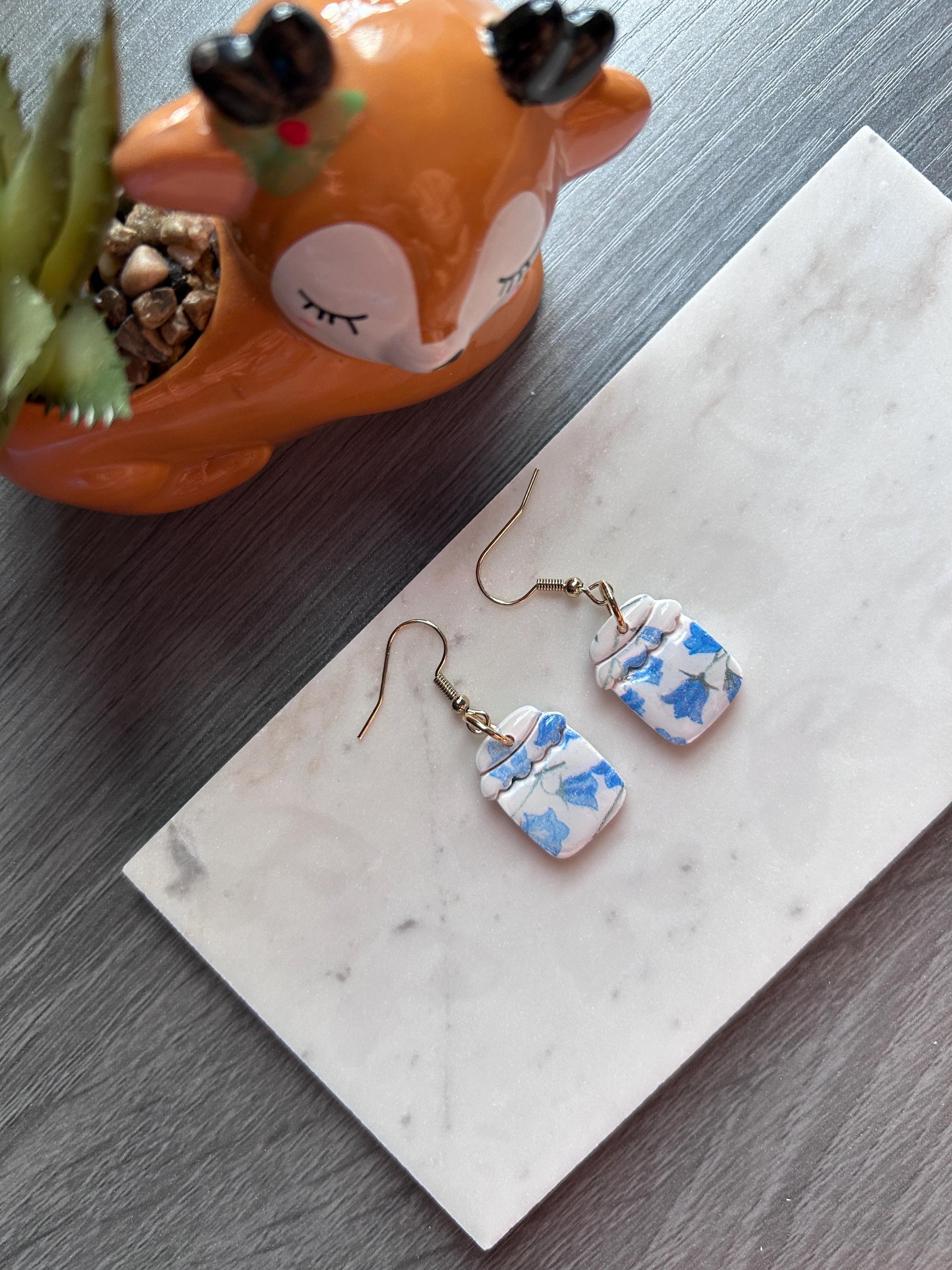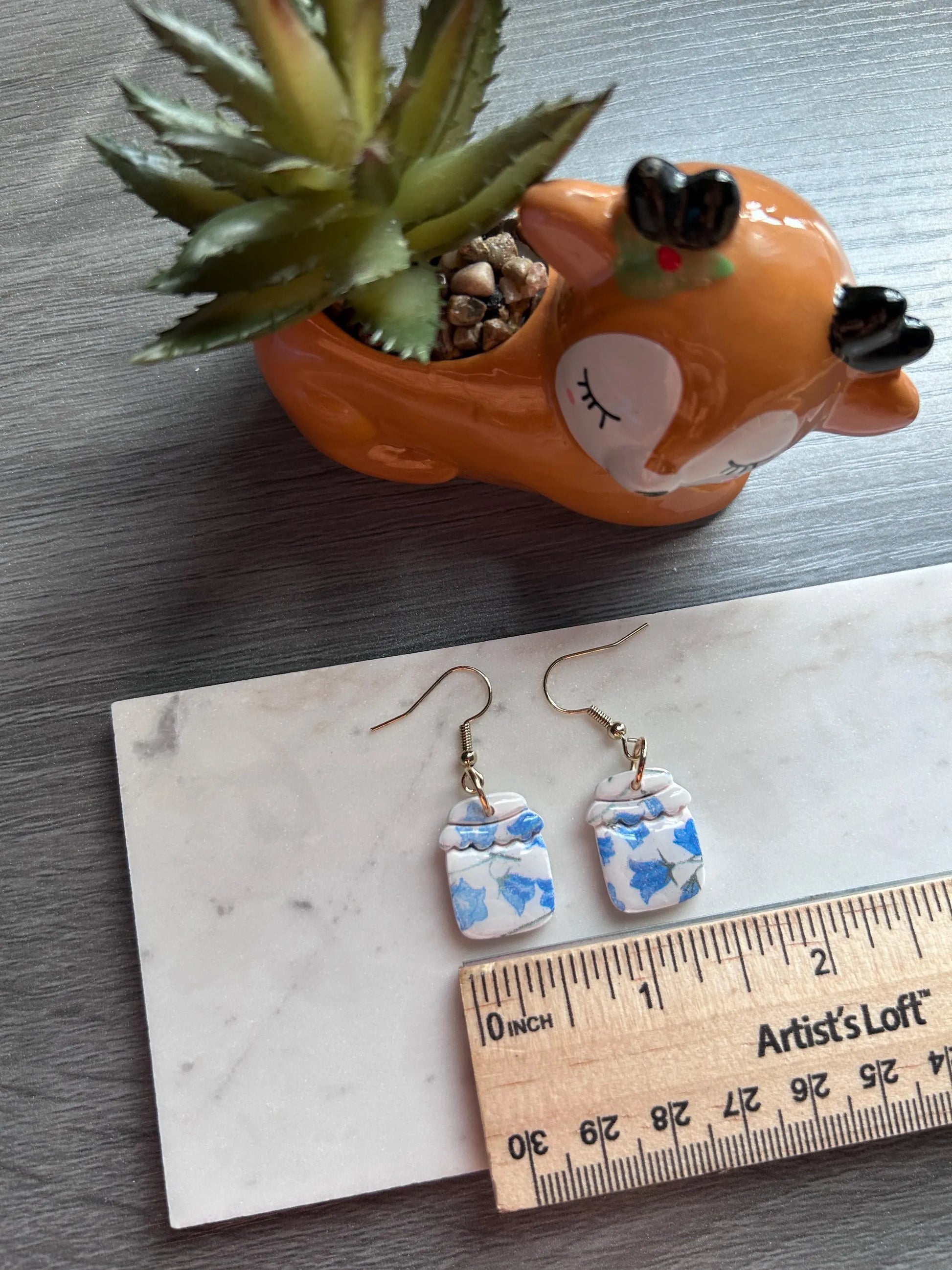 These beautiful jar shaped earrings are made from polymer clay which is strong and durable and super lightweight. The print on them is reflecting the spring season and is sealed with resin for a nice and glossy finish.